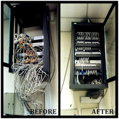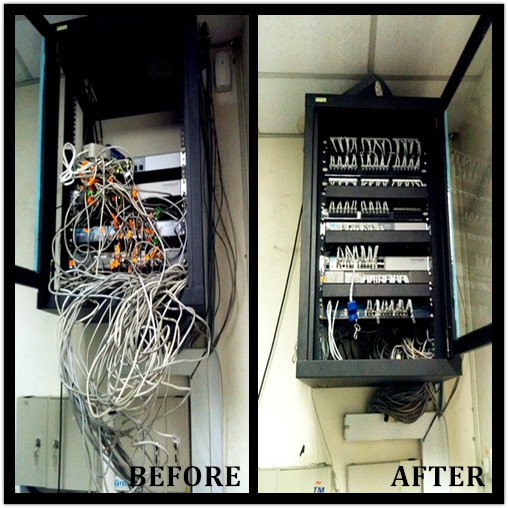 The Rack Cabinet 42 U has been installed Servers but look for the before on right and after on left you can recognize our