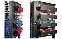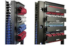 standing equipment racks or cabinet enclosures. This helps organize cables
